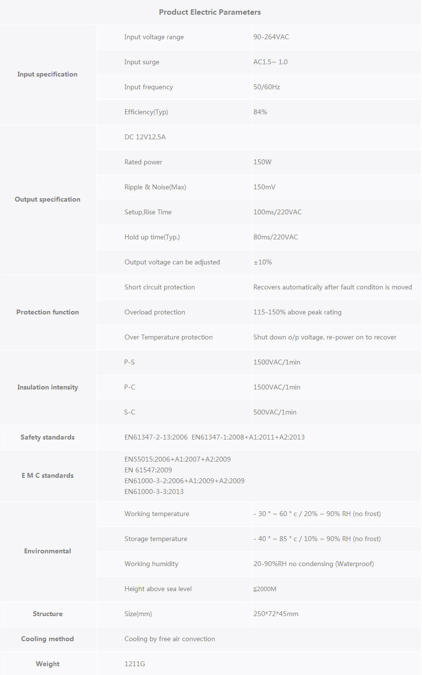 JAH-150CV-12Mechanical Specification